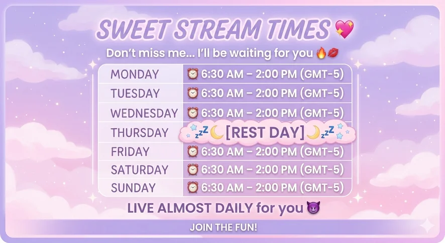 My schedule stream daily from6:30 AM to 2:00 PM (GMT-5)